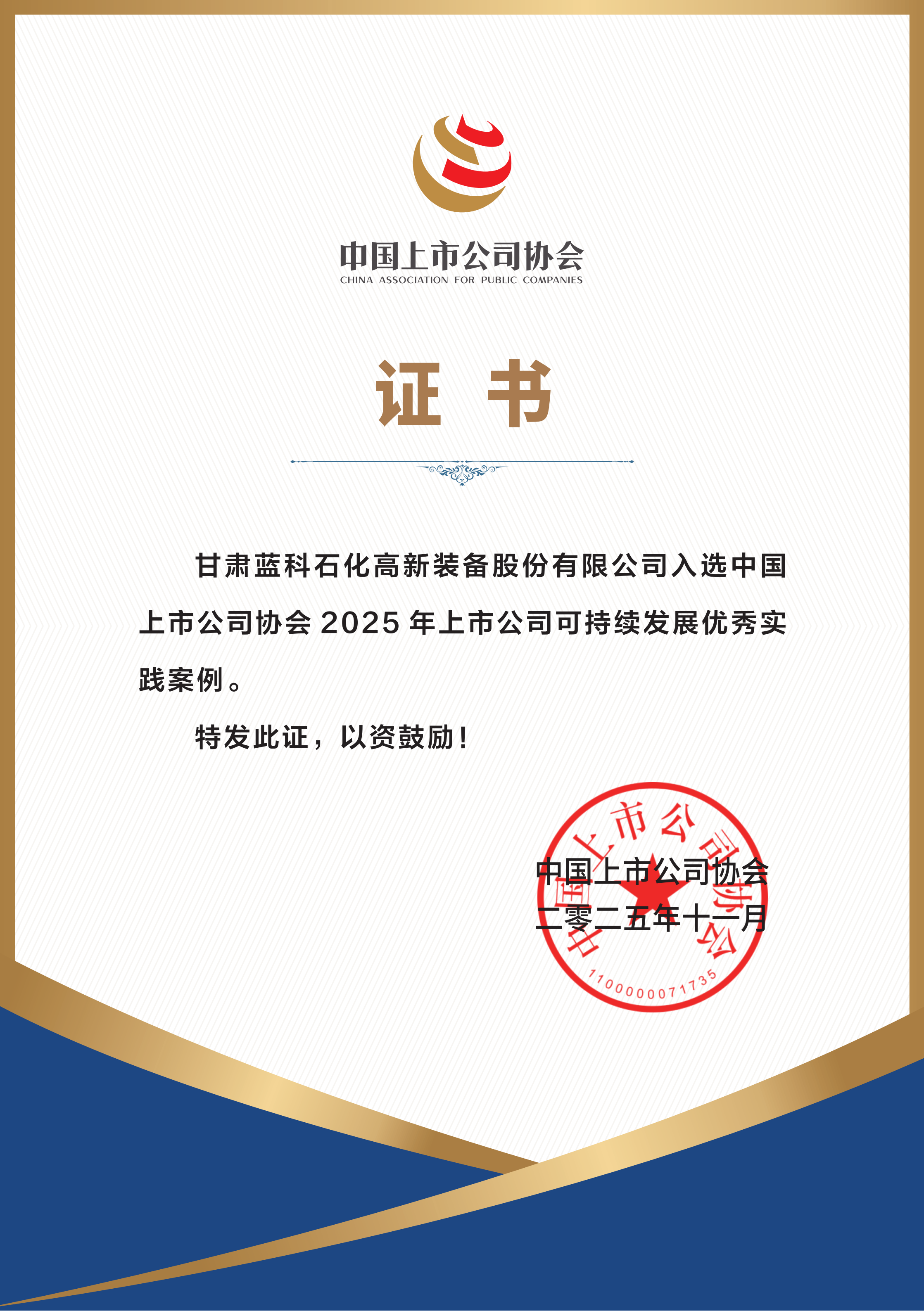 11月18日,中國(guó)上市公司協(xié)會(huì)(以下簡(jiǎn)稱(chēng)“中上協(xié)”)在北京召開(kāi)2025上市公司可持續(xù)發(fā)展大會(huì)。會(huì)上,甘肅藍(lán)科石化高新裝備股份有限公司榮獲“2025年上市公司可持續(xù)發(fā)展優(yōu)秀實(shí)踐案例”獎(jiǎng)項(xiàng)。近年來(lái),作為全國(guó)性的上...