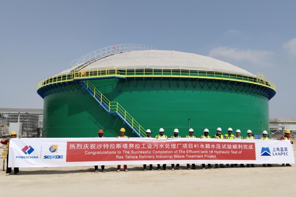 近期,藍科高新下屬上海藍濱石化設備有限責任公司(以下簡稱“上海藍濱”)承建的拉斯塔努拉儲罐EPC項目,順利完成水箱水壓試驗,標志著項目取得階段性重大進展。作為藍科高新在沙特阿拉伯地區(qū)的首個工業(yè)污水處理工程,該項目坐落于沙特東部省拉斯塔努拉市Rahima區(qū)域,占地面積約17萬平方米,涵蓋日處理量2萬立方米的污水處理系統(tǒng)、1.2立方米/小時的WAO廢堿液處理系統(tǒng),以及污水與產(chǎn)出水輸送管道等核心設施。項目建成后,將為全球領先油氣一體化企業(yè)沙特阿美公司提供專業(yè)水處理支持,保障當?shù)責捰蛷S綜合體穩(wěn)定運營,對助力沙特改善水環(huán)境、構建良好生態(tài)、推動綠色發(fā)展具有深遠意義。